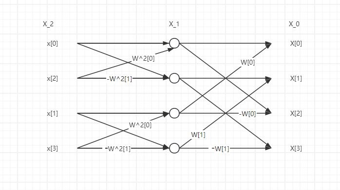 这样子,这里只需计算一半的 。进一步地,可以发现 和 中也可以利用 的周期性减少计算,只要 是 2 的正整数次幂(不是的话后面补 0),就可以把 和 的计算细分为更小的子问题,这就是所谓的蝶形变换。